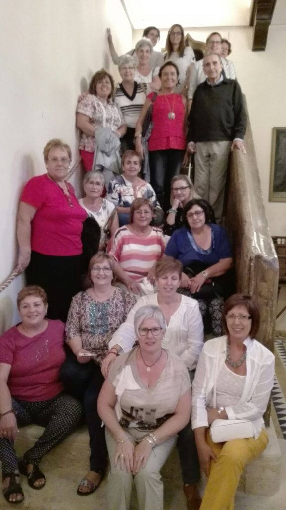 El pasado mes de septiembre, unas cuantas delegadas de Afammer-Teruel se dieron cita en Calaceite para hacer una ruta turística por la bonita comarca del Matarraña. La ruta empezó en Calaceite donde pudieron realizar una visita por los sitios más emblemáticos de la localidad. A la hora del almuerzo se llegó a Valderrobres, donde se degustaron elaboraciones típicas de la población; la tarde se pasó en Fuentespalda con recepción de la alcaldesa y visita entre otros lugares al ayuntamiento donde tienen un tesoro en archivos antiguos. La tarde culminó con la visita a la Torreta y a la Casa Belsa, edificio palaciego situado en la plaza de España donde nos esperaba su propietario Don Enrique y su hija para enseñarnos todos los maravillosos rincones que la preciosa casa esconde. Desde aquí darle las gracias a Don Enrique por el trato recibido y el tiempo dedicado para mostrarnos la joya de la que es propietario.