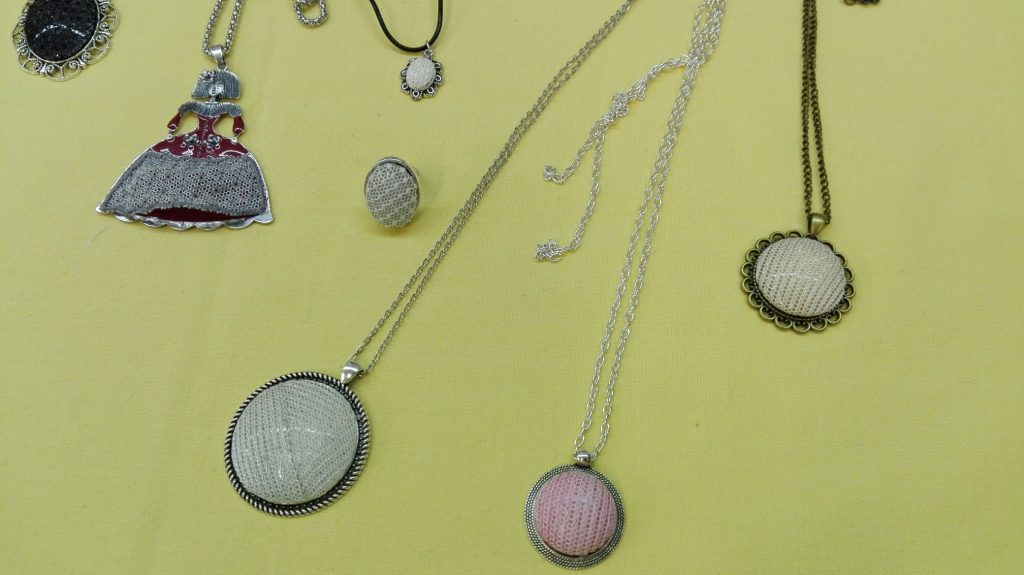 La semana pasada acabó un curso de bordado en Tul realizado en Híjar. Las alumnas han hecho unas labores preciosas que han sido dirigidas por Mª José Masagué, profesora encargada de impartir el curso. Había alumnas novatas que no lo habían hecho nunca y han comenzado de cero y alumnas un poco más aventajadas que ya conocían la técnica y han hecho unas labores divinas. El ambiente del taller ha sido excepcional y los trabajos realizados auténticas obras de arte, y aunque vistas en directo las labores lucen más, para muestra dejamos unas fotografías que van desde el primer trabajo que se hace aprendiendo los distintos puntos hasta unos colgantes con bordado en tul, y como no los fantásticos bobinés de baturra.
