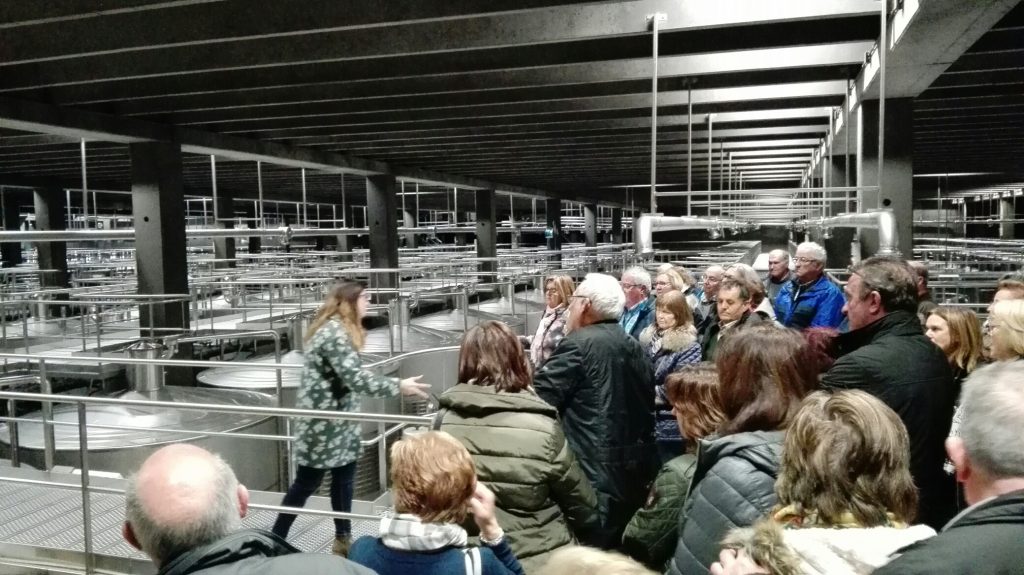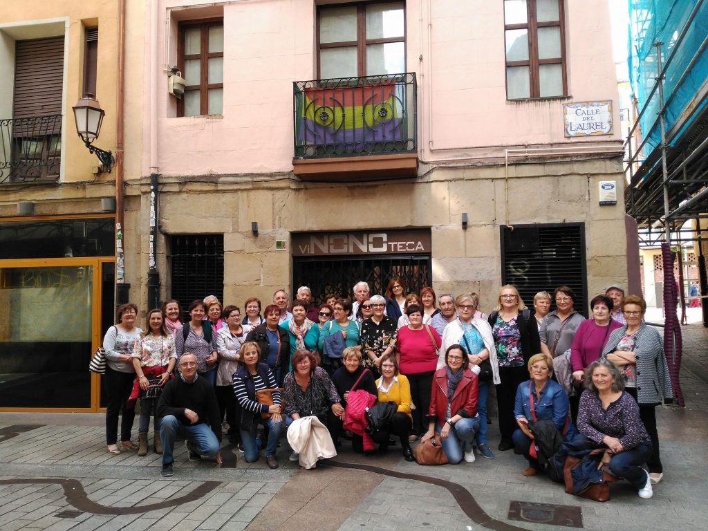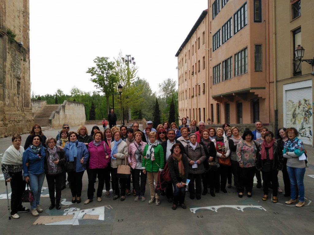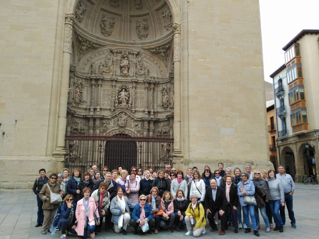 El 11 de abril empezamos con nuestros viajes del día. Esta vez el destino elegido fue Logroño que ha tenido una gran acogida entre nuestras asociadas por lo que realizaremos un total de seis excursiones. Nuestro día comienza con la recogida de los viajeros para llegar directamente a las Bodegas Campo Viejo, en las afueras de Logroño. Allí nos reciben Judith o Raúl, dos encantadores Relaciones Públicas que hacen de guías por la Bodega contando detalladamente y de forma muy amena, la historia de la bodega, la elaboración del vino, variedades de uva presentes en un Rioja, embotellado, barricas, tiempos en botella y barrica para un Reserva y un Gran Reserva dentro de la Denominación de Origen Rioja, etc. para terminar con una cata de vinos con aperitivo riojano ya en el bar o en la terraza que cuenta con unas espectaculares vistas.