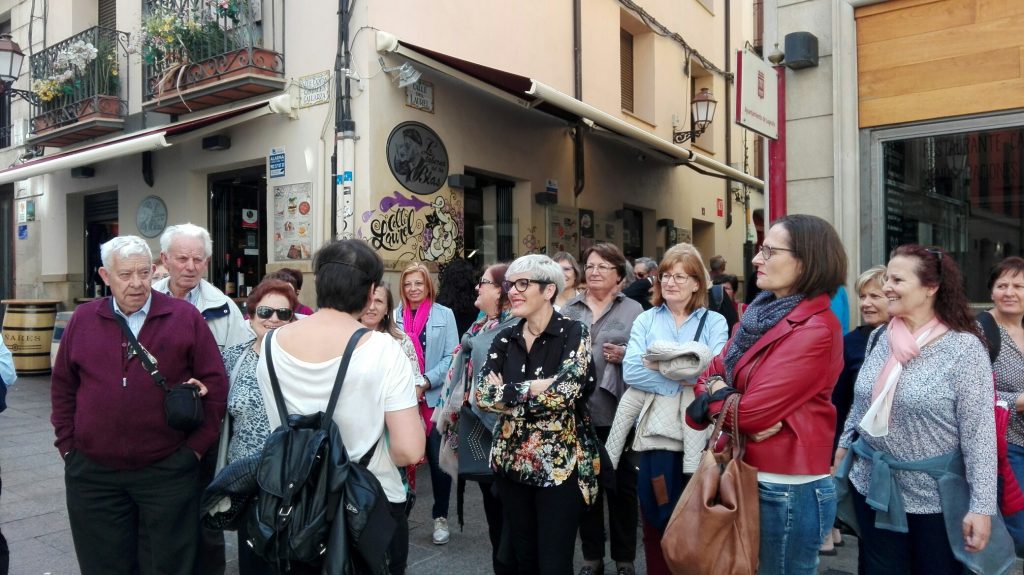 Terminado el postre y el café nos recoge en el mismo restaurante Pilar Lumbreras, guía de la ciudad de Logroño, que con su buen hacer y su saber nos da una vuelta por el Logroño histórico contándonos su historia, sin dejar de visitar la calle Laurel, el Mercado de Abastos, Paseo del Espolón, Calle Portales, etc. para acabar en la plaza de la Concatedral de Santa María de la Redonda.