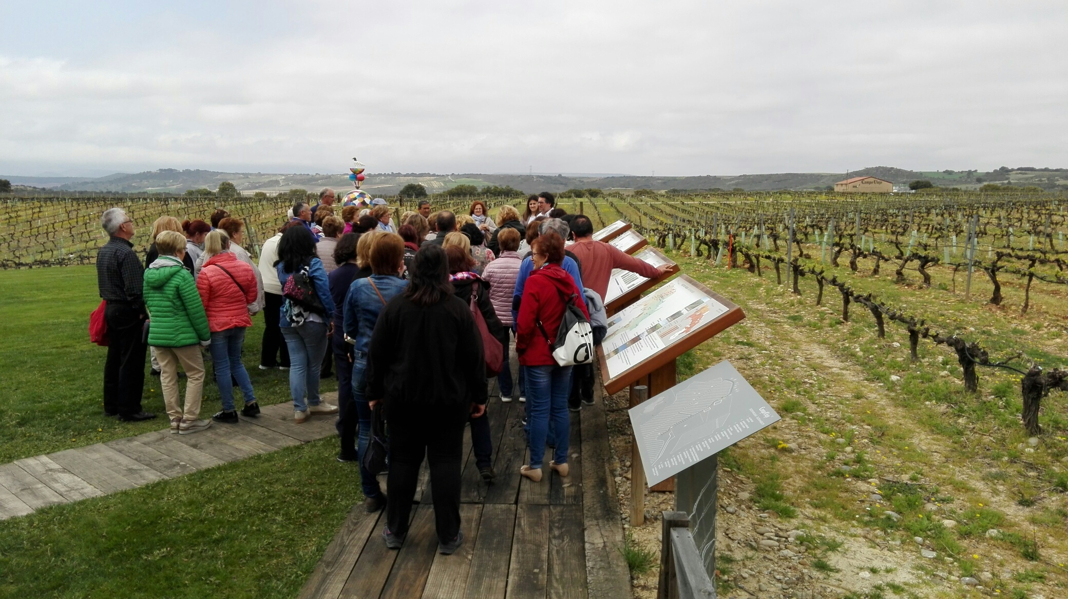 El 11 de abril empezamos con nuestros viajes del día. Esta vez el destino elegido fue Logroño que ha tenido una gran acogida entre nuestras asociadas por lo que realizaremos un total de seis excursiones. Nuestro día comienza con la recogida de los viajeros para llegar directamente a las Bodegas Campo Viejo, en las afueras de Logroño. Allí nos reciben Judith o Raúl, dos encantadores Relaciones Públicas que hacen de guías por la Bodega contando detalladamente y de forma muy amena, la historia de la bodega, la elaboración del vino, variedades de uva presentes en un Rioja, embotellado, barricas, tiempos en botella y barrica para un Reserva y un Gran Reserva dentro de la Denominación de Origen Rioja, etc. para terminar con una cata de vinos con aperitivo riojano ya en el bar o en la terraza que cuenta con unas espectaculares vistas.