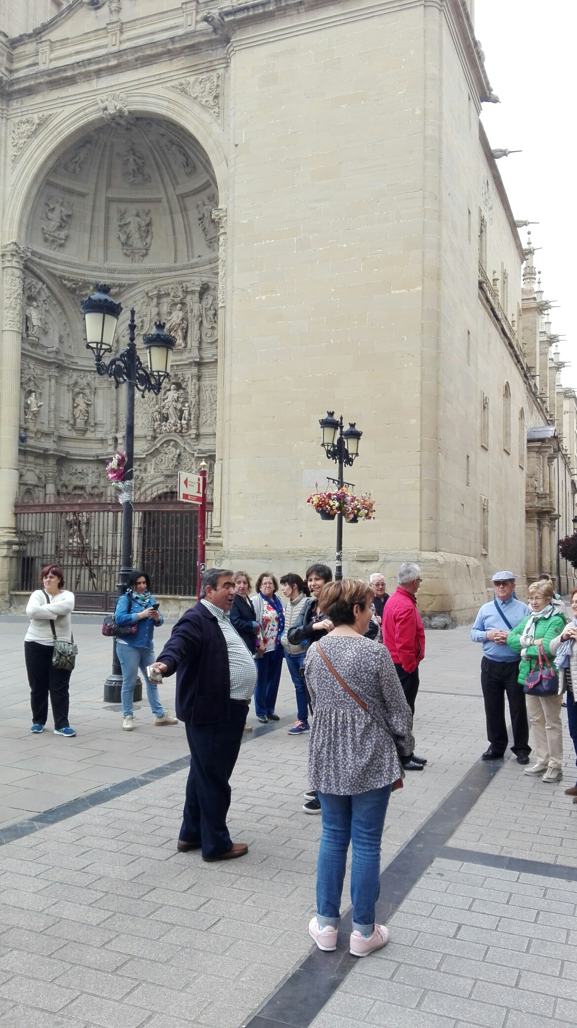 Terminado el postre y el café nos recoge en el mismo restaurante Pilar Lumbreras, guía de la ciudad de Logroño, que con su buen hacer y su saber nos da una vuelta por el Logroño histórico contándonos su historia, sin dejar de visitar la calle Laurel, el Mercado de Abastos, Paseo del Espolón, Calle Portales, etc. para acabar en la plaza de la Concatedral de Santa María de la Redonda.